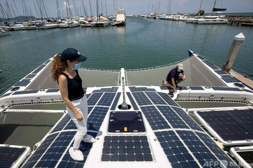 【5月15日 AFP】水素やその他の再生可能エネルギーだけで世界一周を目指す双胴船「エナジーオブザーバー(Energy Observer)」がこのほど、タイ・パタヤ(Pattaya)に寄港した。船はその後、タイ湾(Gulf of Thailand)の対岸フアヒン(Hua Hin)沖を航行した。