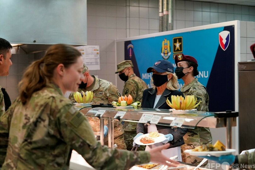 【5月7日 AFP】ジョー・バイデン(Joe Biden)米大統領の妻ジル(Jill Biden)氏は6日、ルーマニア東部コンスタンツァ(Constanta)近郊のミハイル・コガルニチャヌ(Mihail Kogalniceanu)空軍基地を訪れ、駐留米兵を慰問した。ジル氏は東欧諸国歴訪中。(c)AFP