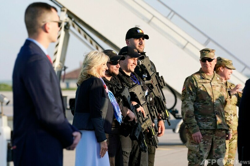 【5月7日 AFP】ジョー・バイデン(Joe Biden)米大統領の妻ジル(Jill Biden)氏は6日、ルーマニア東部コンスタンツァ(Constanta)近郊のミハイル・コガルニチャヌ(Mihail Kogalniceanu)空軍基地を訪れ、駐留米兵を慰問した。ジル氏は東欧諸国歴訪中。(c)AFP