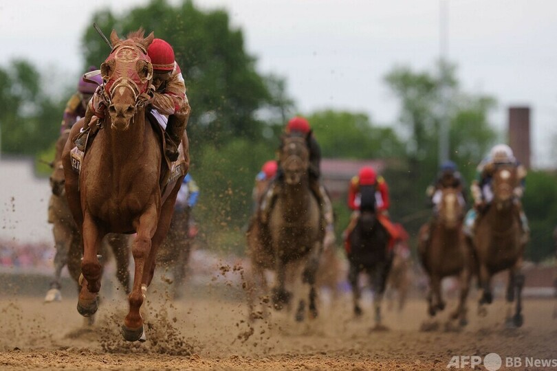【5月8日 AFP】米国競馬のG1レース、第148回ケンタッキーダービー(148th Kentucky Derby、3歳、ダート約2000メートル)が7日、米ケンタッキー州ルイビル(Louisville)のチャーチルダウンズ競馬場(Churchill Downs)で開催され、直前で出走が決まった単勝80倍の穴馬リッチストライク(Rich Strike)が、内側から差し切って衝撃的な優勝を飾った。