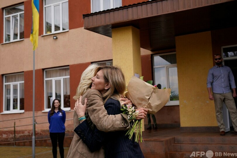 先に訪問していた隣国スロバキアから国境を渡ったジル氏は、子どもを含む民間人の避難所として使われている学校を訪れ、ウォロディミル・ゼレンスキー(Volodymyr Zelensky)大統領の妻オレナ・ゼレンスカ(Olena Zelenska)氏と面会。記者団に対し、「母の日に訪れたかった。ウクライナの人々に対し、この戦争を終わらせなければいけないこと、この戦争がむごたらしいものであること、そして米国民はウクライナ国民と共にあるというのを示すことが重要だと思った」と語った。