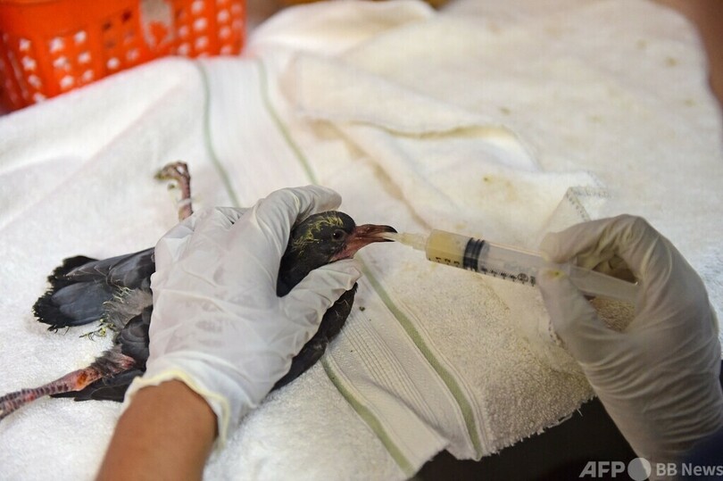 ひなを保護した人たちは、高さ15メートル近い木の巣から地面に落ちたとみている。