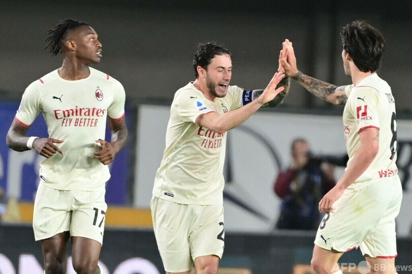 【5月9日 AFP】21-22イタリア・セリエAは8日、第36節の試合が行われ、首位ACミラン(AC Milan)はサンドロ・トナーリ(Sandro Tonali)の活躍でエラス・ベローナ(Hellas Verona)に3-1で勝利し、インテル(Inter Milan)との勝ち点差2を維持した。