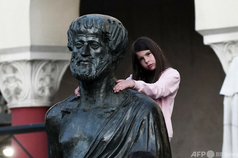 【今日の1枚】偉人像に上る少女、ギリシャ