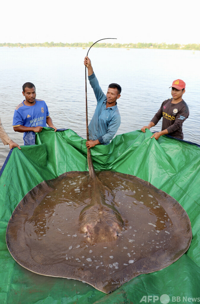 【5月11日 AFP】カンボジア・ストゥントレン(Stung Treng)州の漁師が先週、メコン(Mekong)川で体長4メートル、体重180キロの巨大な淡水エイを偶然釣り上げた。この川で調査をしていた研究者らが10日、発表した。