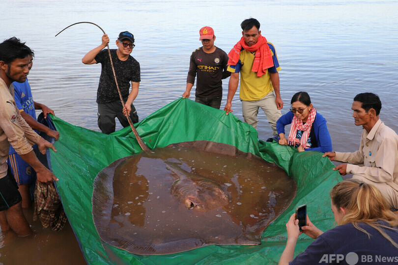【5月11日 AFP】カンボジア・ストゥントレン(Stung Treng)州の漁師が先週、メコン(Mekong)川で体長4メートル、体重180キロの巨大な淡水エイを偶然釣り上げた。この川で調査をしていた研究者らが10日、発表した。