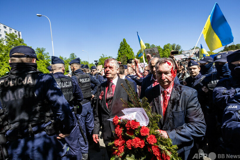 両国をめぐっては9日、駐ポーランド・ロシア大使がワルシャワの旧ソ連兵墓地に献花に訪れた際、親ウクライナ活動家に赤い液体を掛けられた。