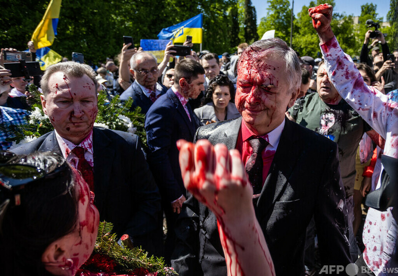 両国をめぐっては9日、駐ポーランド・ロシア大使がワルシャワの旧ソ連兵墓地に献花に訪れた際、親ウクライナ活動家に赤い液体を掛けられた。