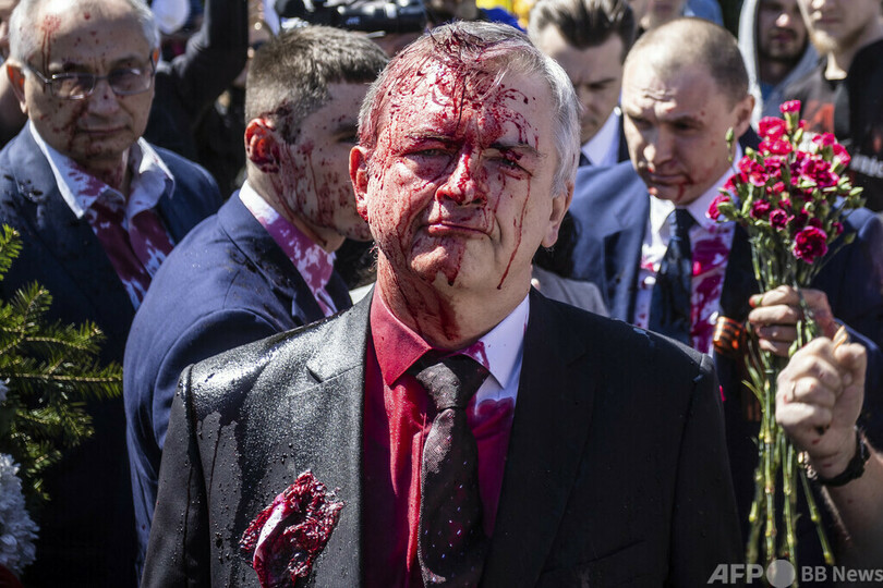 両国をめぐっては9日、駐ポーランド・ロシア大使がワルシャワの旧ソ連兵墓地に献花に訪れた際、親ウクライナ活動家に赤い液体を掛けられた。