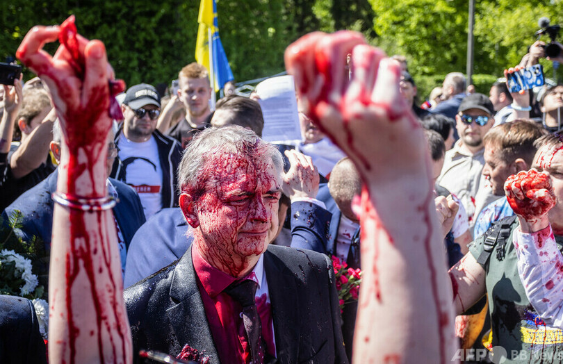 両国をめぐっては9日、駐ポーランド・ロシア大使がワルシャワの旧ソ連兵墓地に献花に訪れた際、親ウクライナ活動家に赤い液体を掛けられた。