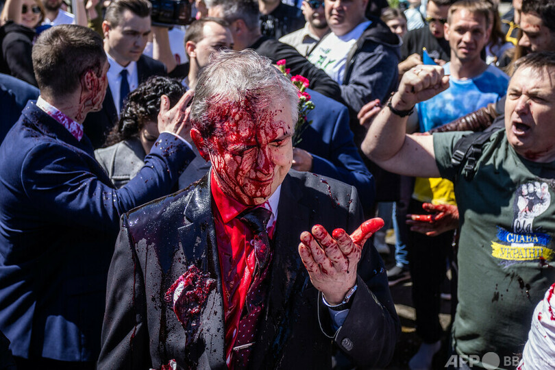 両国をめぐっては9日、駐ポーランド・ロシア大使がワルシャワの旧ソ連兵墓地に献花に訪れた際、親ウクライナ活動家に赤い液体を掛けられた。