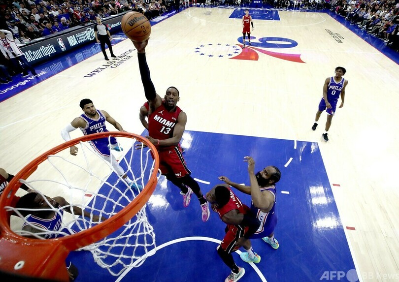 【5月13日 AFP】21-22NBAは12日、プレーオフのカンファレンス準決勝(7回戦制)が行われ、マイアミ・ヒート(Miami Heat)が99-90でフィラデルフィア・セブンティシクサーズ(Philadelphia 76ers)を下し、イースタンカンファレンス決勝に進出した。