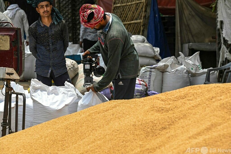 3月に記録的な熱波に見舞われたインドでは、小麦生産にも影響が出ており、政府は減産を予想している。また、小麦価格は世界的に高騰している。(c)AFP