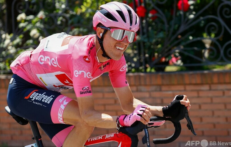 トレック・セガフレード(Trek Segafredo)のフアン・ロペス(Juan Pedro Lopez Perez、スペイン)は、優勝争いの主なライバルらと同タイムでフィニッシュしたため、総合首位を維持している。(c)AFP