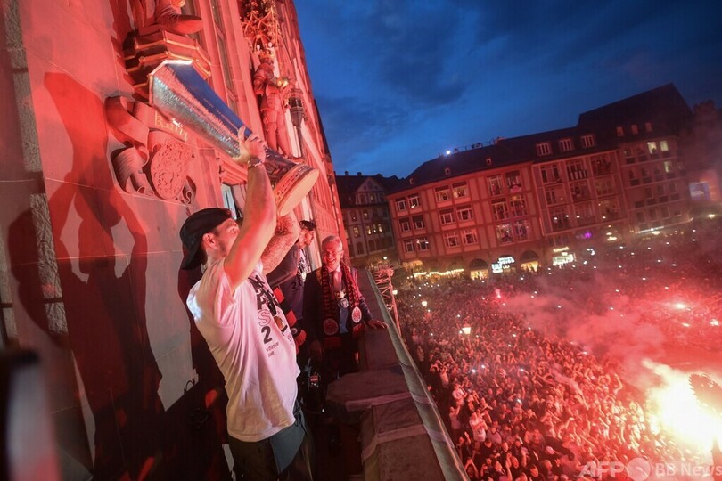 【5月20日 AFP】サッカーヨーロッパリーグ(UEFA Europa League 2021-22)を42年ぶりに制したドイツ・ブンデスリーガ1部のフランクフルト(Eintracht Frankfurt)の選手らが19日、地元に凱旋(がいせん)し、集まった大勢のサポーターに優勝を報告した。