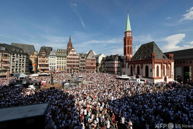 EL制覇のフランクフルトが凱旋 地元サポーターに優勝報告