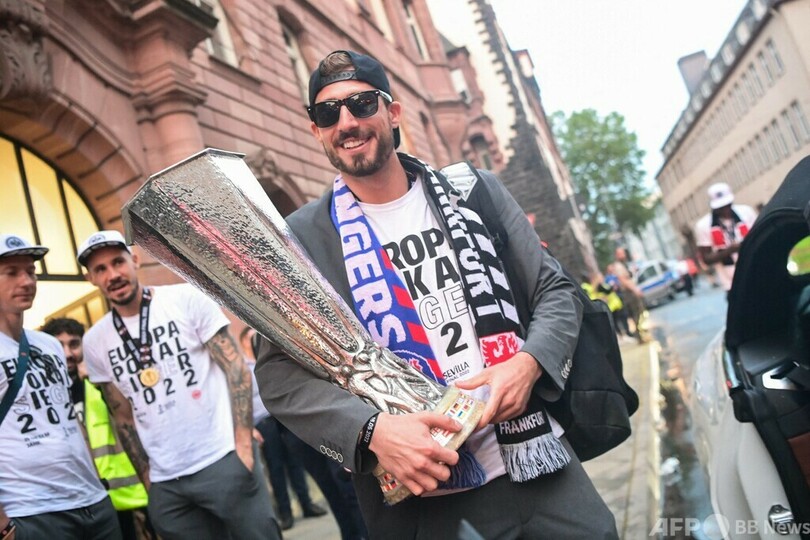 【5月20日 AFP】サッカーヨーロッパリーグ(UEFA Europa League 2021-22)を42年ぶりに制したドイツ・ブンデスリーガ1部のフランクフルト(Eintracht Frankfurt)の選手らが19日、地元に凱旋(がいせん)し、集まった大勢のサポーターに優勝を報告した。