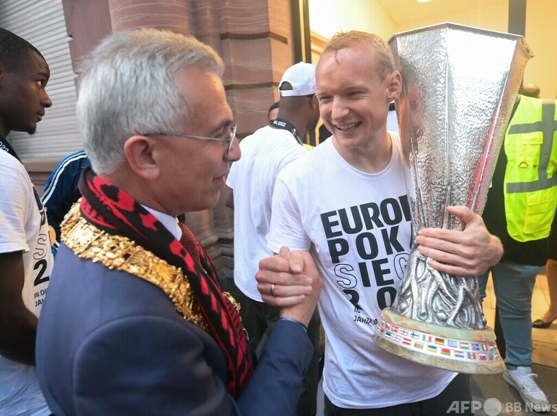 EL制覇のフランクフルトが凱旋 地元サポーターに優勝報告