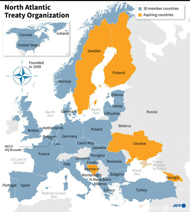 ロシアのウクライナ侵攻は、数十年にわたって軍事的な中立を維持してきたフィンランドやスウェーデンに衝撃を与え、両国のNATO加盟申請につながった。(c)AFP