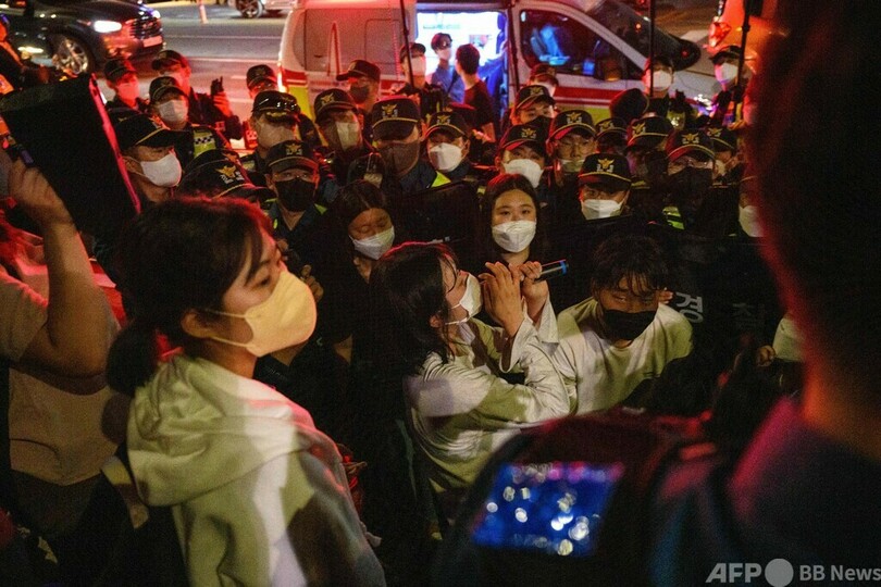 【5月21日 AFP】韓国ソウルで20日、ジョー・バイデン(Joe Biden)米大統領の訪韓に抗議するデモが行われた。デモは、バイデン氏が滞在しているとみられるホテル「グランドハイアット(Grand Hyatt)」前などで行われ、大学生らが参加した。(c)AFP
