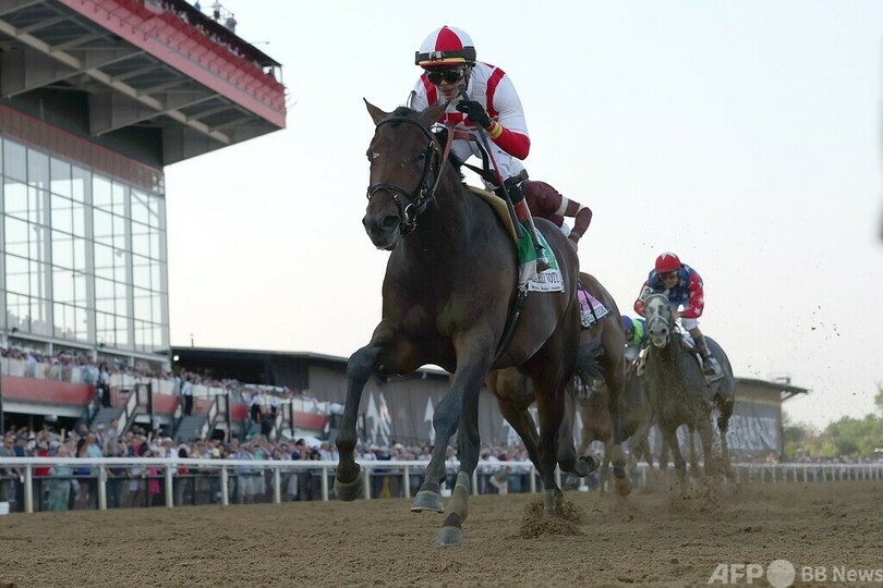 アーリーヴォーティングは序盤から先行すると、追う1番人気でジョエル・ロサリオ(Joel Rosario)騎手騎乗のエピセンター(Epicenter)を抑えて逃げ切った。エピセンターはケンタッキーダービーでも単勝80倍の穴馬リッチストライク(Rich Strike)に敗れて2着となっていたが、またしてもクラシックで悔しいレースに終わった。(c)AFP