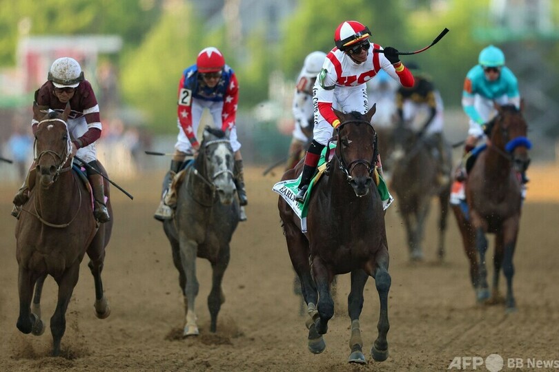 アーリーヴォーティングは序盤から先行すると、追う1番人気でジョエル・ロサリオ(Joel Rosario)騎手騎乗のエピセンター(Epicenter)を抑えて逃げ切った。エピセンターはケンタッキーダービーでも単勝80倍の穴馬リッチストライク(Rich Strike)に敗れて2着となっていたが、またしてもクラシックで悔しいレースに終わった。(c)AFP