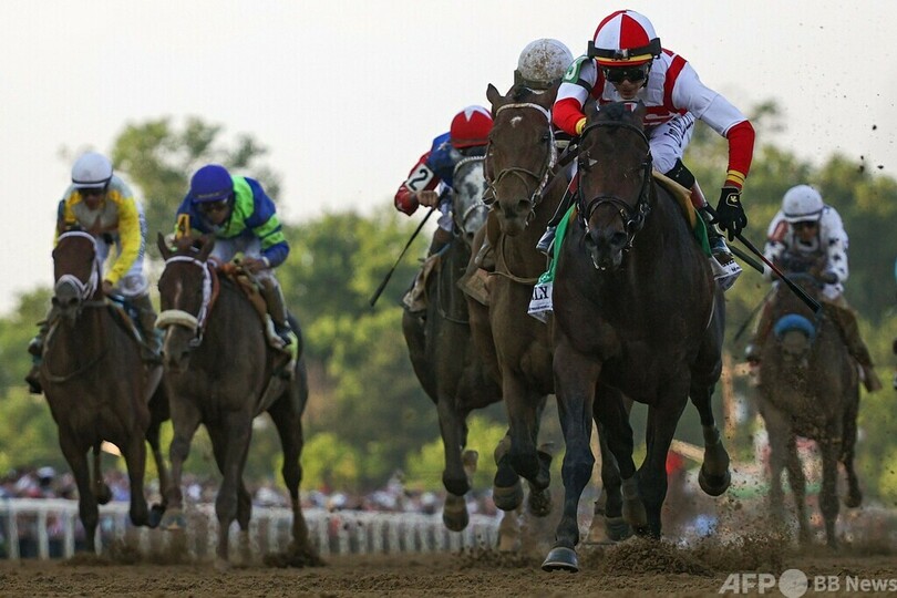 アーリーヴォーティングは序盤から先行すると、追う1番人気でジョエル・ロサリオ(Joel Rosario)騎手騎乗のエピセンター(Epicenter)を抑えて逃げ切った。エピセンターはケンタッキーダービーでも単勝80倍の穴馬リッチストライク(Rich Strike)に敗れて2着となっていたが、またしてもクラシックで悔しいレースに終わった。(c)AFP