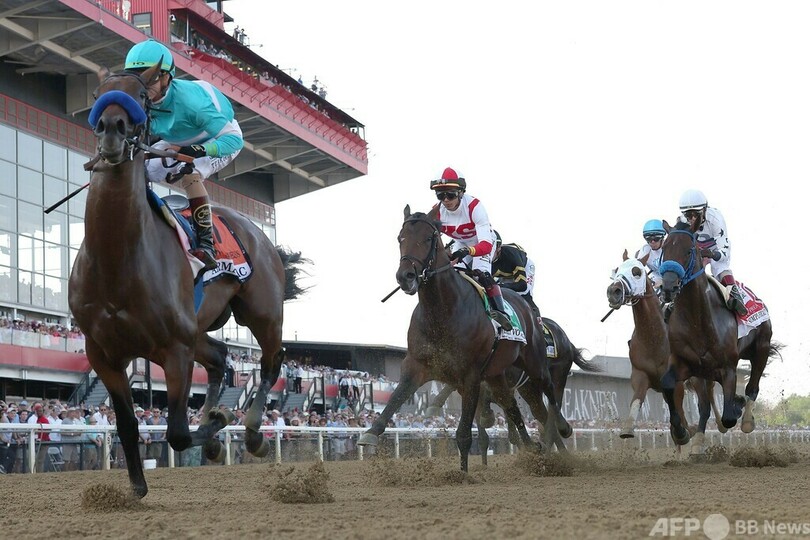 アーリーヴォーティングは序盤から先行すると、追う1番人気でジョエル・ロサリオ(Joel Rosario)騎手騎乗のエピセンター(Epicenter)を抑えて逃げ切った。エピセンターはケンタッキーダービーでも単勝80倍の穴馬リッチストライク(Rich Strike)に敗れて2着となっていたが、またしてもクラシックで悔しいレースに終わった。(c)AFP