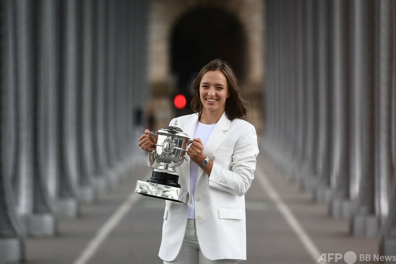 【6月5日 AFP】全仏オープンテニス(French Open 2022)の女子シングルスを制したイガ・シフィオンテク(Iga Swiatek、ポーランド)が5日、仏パリ市内で記念撮影に臨んだ。