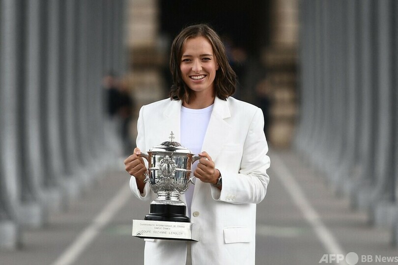 【6月5日 AFP】全仏オープンテニス(French Open 2022)の女子シングルスを制したイガ・シフィオンテク(Iga Swiatek、ポーランド)が5日、仏パリ市内で記念撮影に臨んだ。