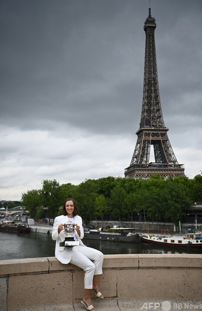 【6月5日 AFP】全仏オープンテニス(French Open 2022)の女子シングルスを制したイガ・シフィオンテク(Iga Swiatek、ポーランド)が5日、仏パリ市内で記念撮影に臨んだ。