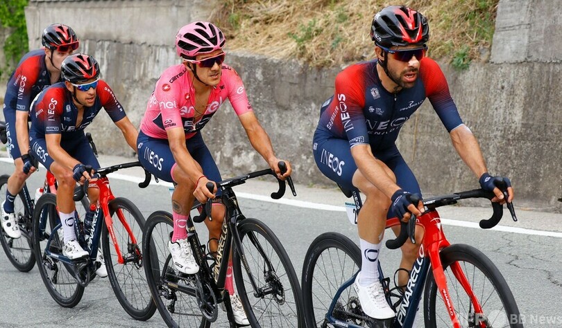 総合優勝争いでは、イネオス・グレナディアーズ(Ineos Grenadiers)のリチャル・カラパス(Richard Carapaz、エクアドル)が前日に獲得したトップを守った。(c)AFP