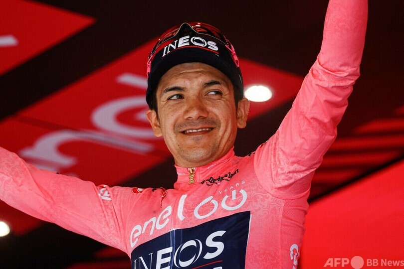 総合優勝争いでは、イネオス・グレナディアーズ(Ineos Grenadiers)のリチャル・カラパス(Richard Carapaz、エクアドル)が前日に獲得したトップを守った。(c)AFP