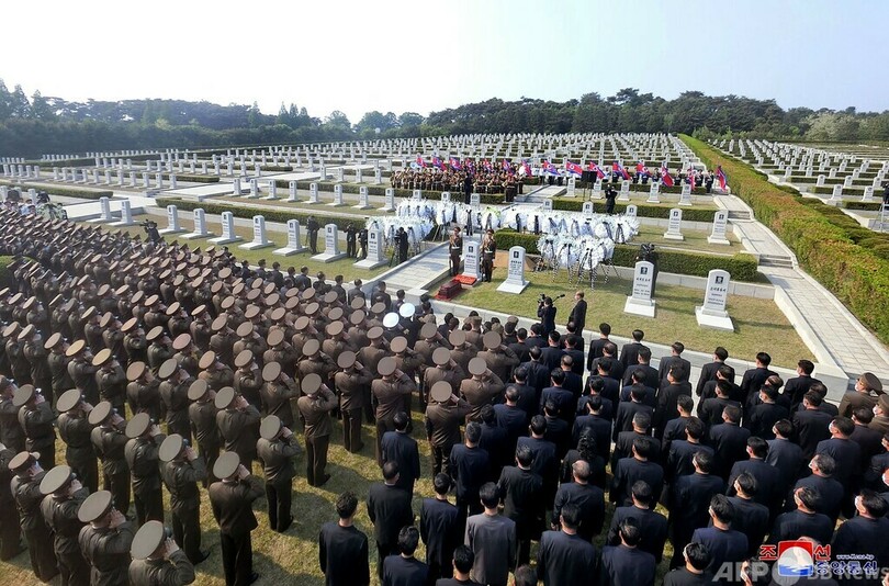金正恩氏、軍幹部の国葬にマスクなしで参列
