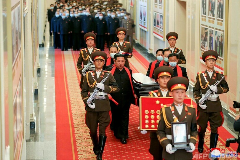 【5月23日 AFP】北朝鮮の金正恩(キム・ジョンウン、Kim Jong Un)総書記は22日、軍幹部の国葬に参列し、自らひつぎを運んだ。国営朝鮮中央通信(KCNA)が23日報じた。同国は数日前に、新型コロナウイルスの感染拡大を抑え込んだと強調しており、金氏はマスクを着用していなかった。