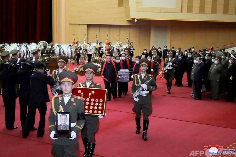 【5月23日 AFP】北朝鮮の金正恩(キム・ジョンウン、Kim Jong Un)総書記は22日、軍幹部の国葬に参列し、自らひつぎを運んだ。国営朝鮮中央通信(KCNA)が23日報じた。同国は数日前に、新型コロナウイルスの感染拡大を抑え込んだと強調しており、金氏はマスクを着用していなかった。