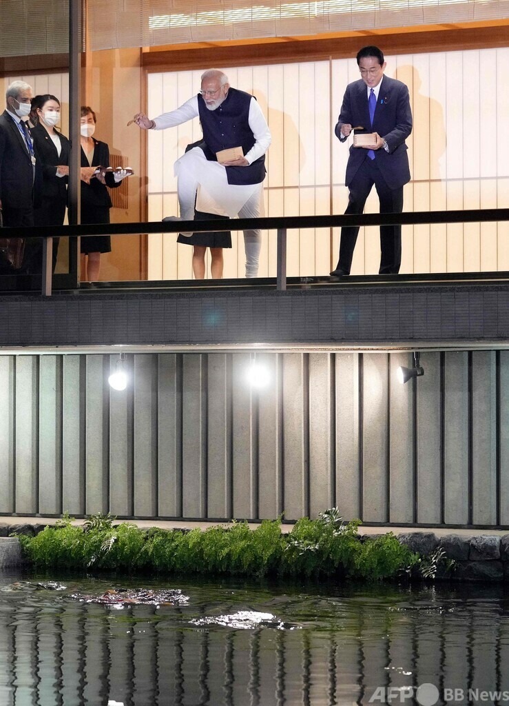 【5月25日 AFP】インドのナレンドラ・モディ(Narendra Modi)首相は24日、東京・元赤坂の迎賓館で池のコイに餌をやった。