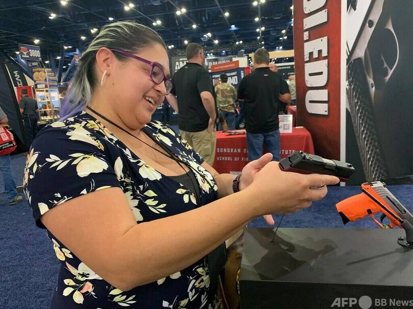 退役軍人のリジー・V(Lisy V)さん(31)は9ミリ拳銃の重さやバランスを試しながら、メーカーの担当者に「ああ、これはいい」と述べた。「テキサスはズボンでは暑いので、スカートの下にホルスターで取り付けて隠せるピストルを探している」という。