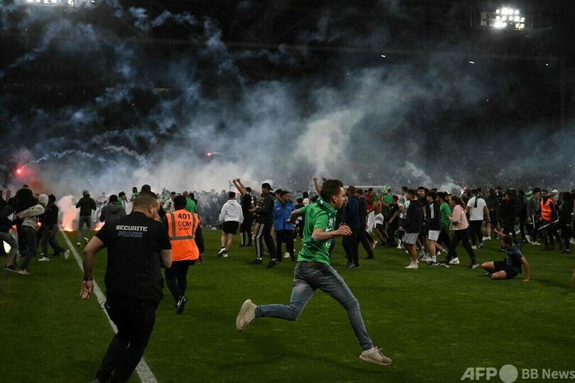 サンテティエンヌ、2部降格でファン暴動 機動隊とピッチで衝突