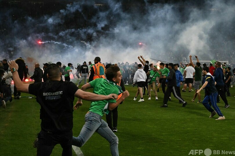 サンテティエンヌ、2部降格でファン暴動 機動隊とピッチで衝突
