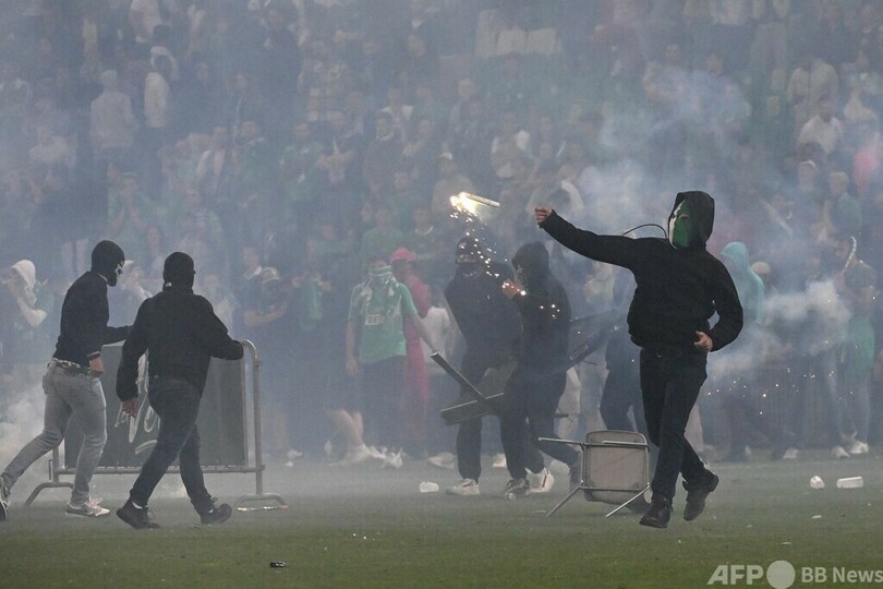 サンテティエンヌ、2部降格でファン暴動 機動隊とピッチで衝突