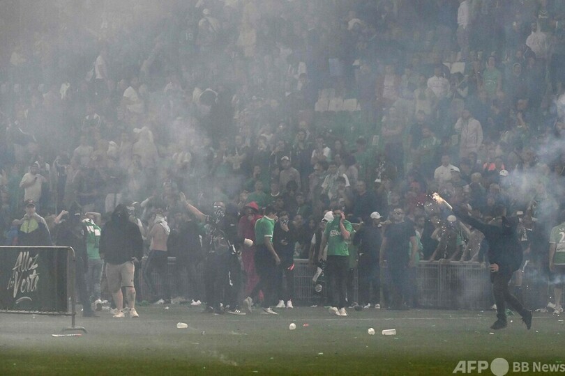 サンテティエンヌ、2部降格でファン暴動 機動隊とピッチで衝突