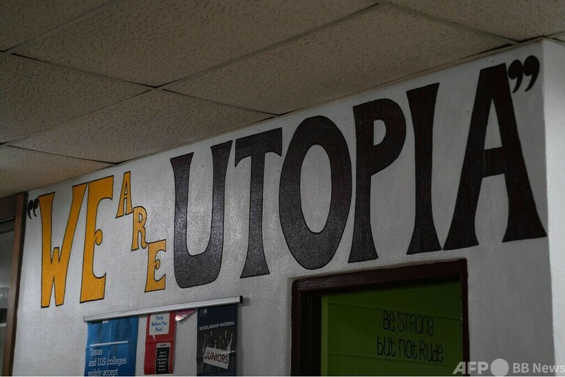 【6月4日 AFP】米テキサス州ユートピア(Utopia)で唯一の学校には入り口に、教職員が銃を所持していることを警告する張り紙がある。先月24日、ここから約50キロ離れたユバルディ(Uvalde)の小学校で10代の容疑者が銃を乱射し、児童19人と教員2人を殺害する事件が起きた。教職員の武装は、こうした事件を防止するための措置だ。