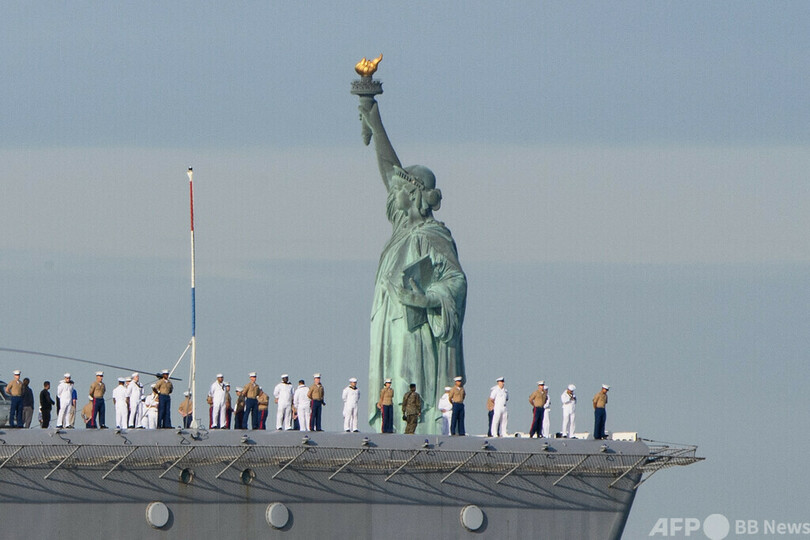 【今日の1枚】強襲揚陸艦、女神の前を通過中 米ニューヨーク