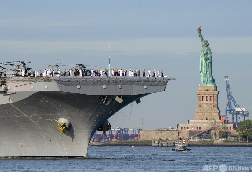 【今日の1枚】強襲揚陸艦、女神の前を通過中 米ニューヨーク