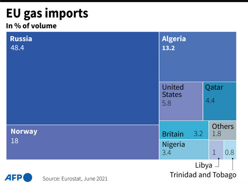 EUはエネルギーの脱ロシア依存を急いでいるが、天然ガスの禁輸をめぐっては、複数の加盟国の対ロ依存度が高いことから対応の足並みが乱れている。(c)AFP