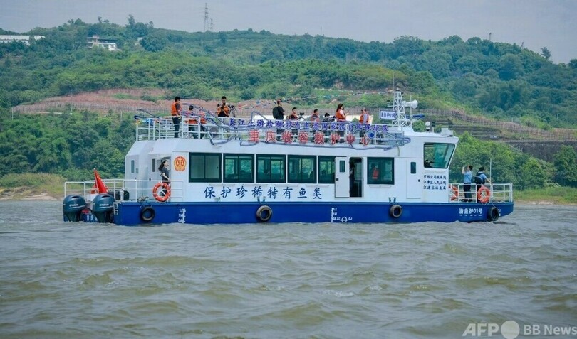 この収容救護センターは長江上流の希少・特有魚類の収容・救護を主な機能とする船です。船体の全長は21メートル、型幅は5.2メートルで、観察、救護、リハビリおよび順化用の水槽などが整備されているほか、薬品キャビネットや機器キャビネットなどの設備も配置されており、長江上流希少・特有魚類国家級自然保護区重慶区間で巡回中に発見された、あるいは取り締まり中に押収されたチョウコウチョウザメなど48種の希少・特有魚類の収容・救護を速やかに実施するとともに、魚類保護ボランティアに発見された傷のある魚や病気の魚を受け入れ、救護を行います。(c)CGTN Japanese/AFPBB News