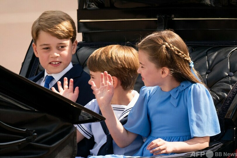 女王をめぐっては、健康不安から行事に出席できない可能性も取り沙汰されていたが、パレードを見守り、笑顔で声援に応えた。(c)AFP