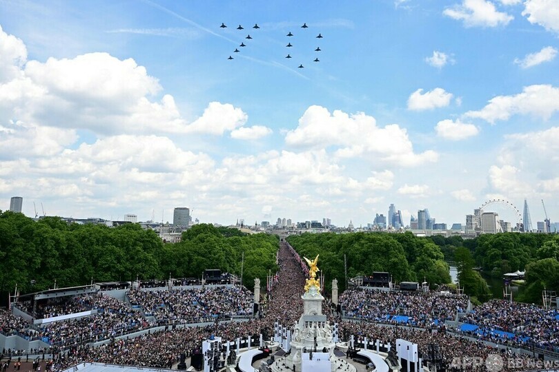 英女王、在位70年記念式典に出席 祝賀に沸く国民
