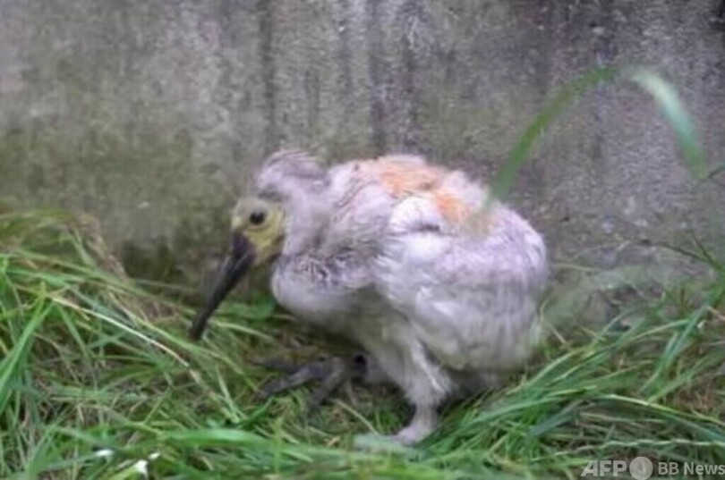 陝西省漢中市トキ保護区で人工繁殖のトキ赤ちゃんが生後1カ月に